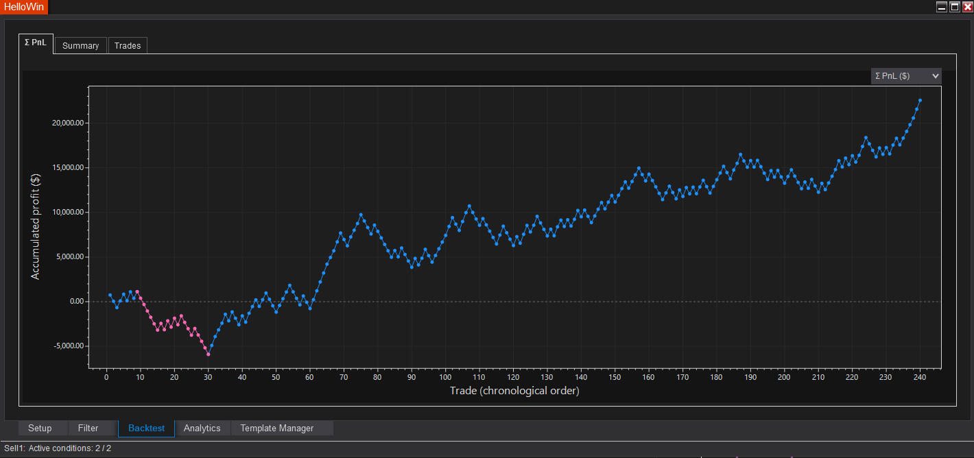 Here’s the backtest performance of the Romantic Pulse + Solar Wave setup on the NQ 200-tick chart over the last 30 days: